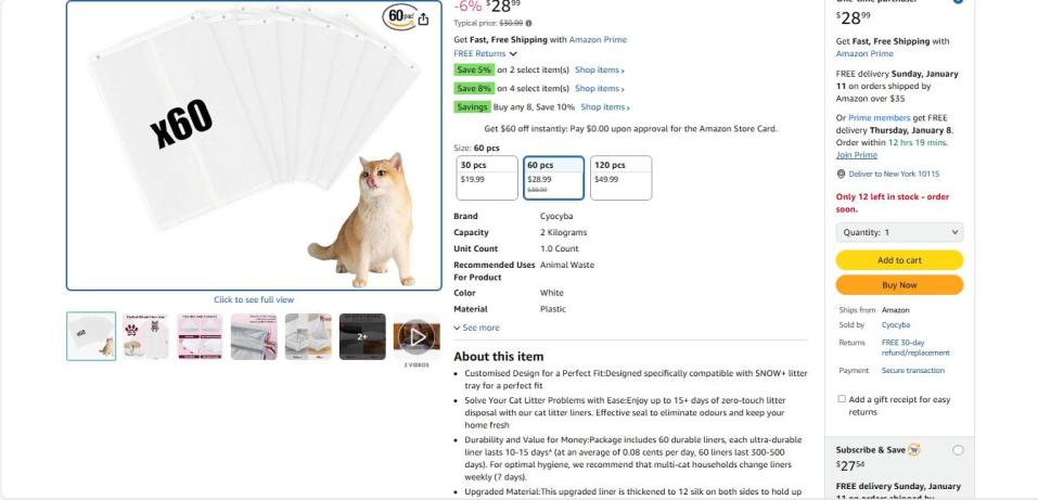 | 1 | 1 | petsnowy cat litter bags | USA | 1242656 |