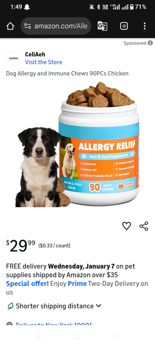 | 5 | 5 | Dog Allergy and Immune Chews 90PCs | USA | 1239157 |