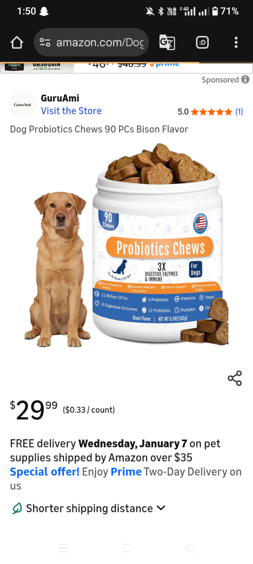| 5 | 5 | Dog Probiotics Chews 90 PCs | USA | 1239160 |
