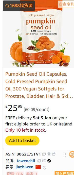 | 2 | 2 | Pumpkin Seed Oil 300 Softgels | UK | 1233738 |