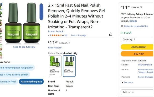 | 5 | 5 | 2 x 15ml Fast Gel Nail Polish Remover | UK | 1226227 |
