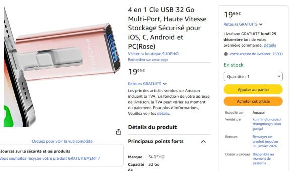 | 5 | 5 | 4 en 1 Cle USB 32 Go Multi-Port | FR | 1226230 |