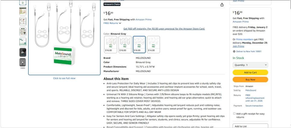 | 2 | 2 | hearing aid clip | FEEDBACK USA | 1223350 |