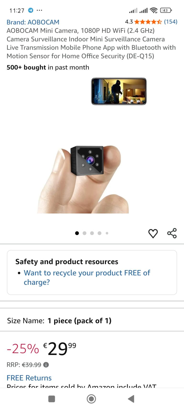 | 1 | 1 | Mini kamera | DE | 1218373 |