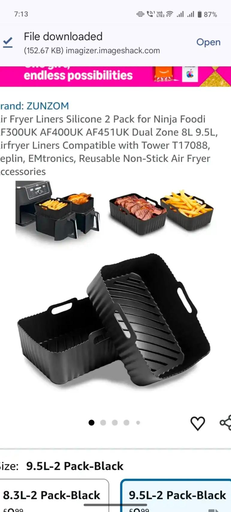 | 2 | 2 | https://www.amazon.co.uk/s?k=air+fryer+liners+silicone&rh=p_4%3AZUNZOM | UK | 1208666 |