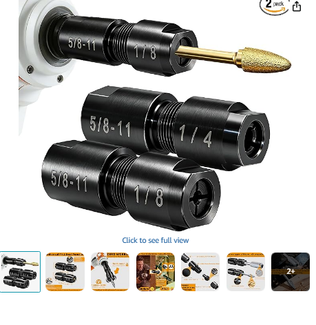 2-Pack Angle Grinder to Die Grinder Adapter, 5/8”-11 to 1/4" & 1/8" Collet, Heavy-Duty Metal Conversion Kit for Rotary Burrs, Wood Carving & Metal Polishing, Fits Angle Grinders, Drills & Rotary Tools