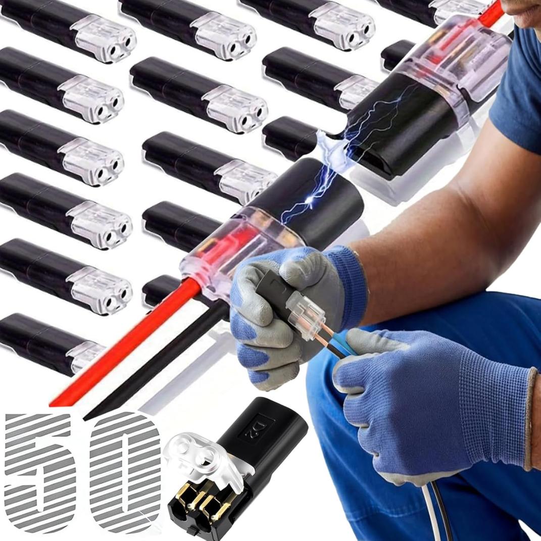 50 Pcs Double Wire Plug in Connector with Locking Buckle, Quick Connect Wire Connectors, Electrical Connectors Kit, Flame Retardant Locking Wire Quick Connectors for Emergency Repairs (50 Pcs)