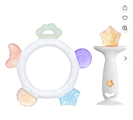 Smasener 2 Pcs Baby Teething Toys [https://www.walmart.com/ip/Smasener-3-Pcs-Baby-Teething-Toys-6-12-Months-Infants-Toddlers-Easy-Grip-Easy-Clean-Relieves-Teething-Discomfort-Soothes-Sore-Gums-Star-Ring-Teething/19189604455?classType=REGULAR&from=%2Fsearc