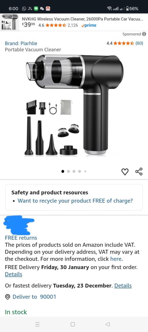 | 1 | 1 | Piarhlie Aspirapolvere Auto Senza Fili | IT | 1173209 |