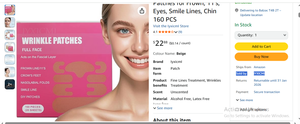 | 1 | 1 | face tape for wrinkles | CA | 1173273 |