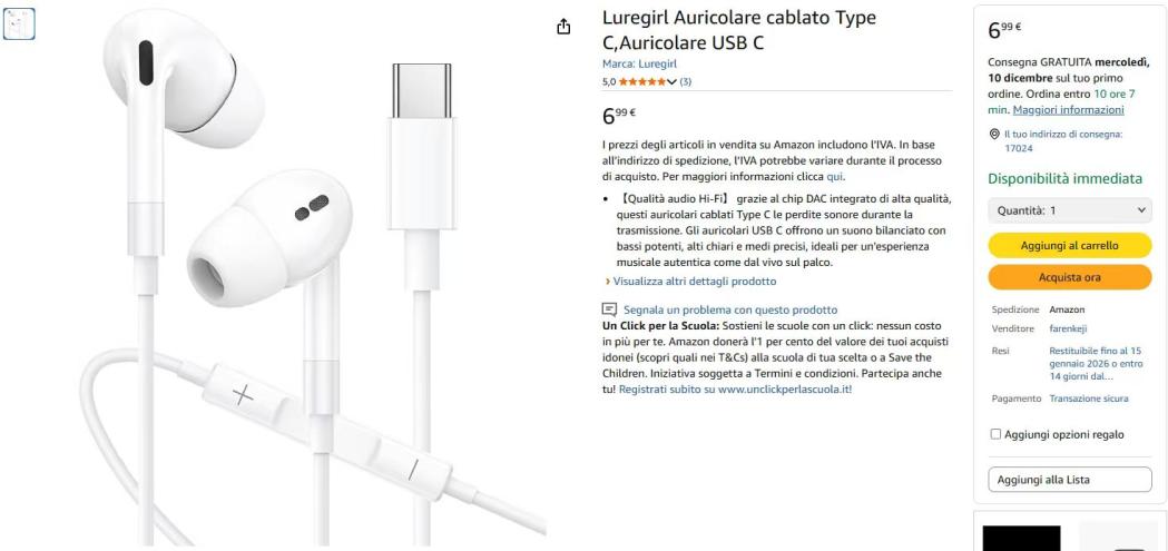| 20 | 20 | Luregirl Auricolare cablato Type C | RATING IT | 1160975 |