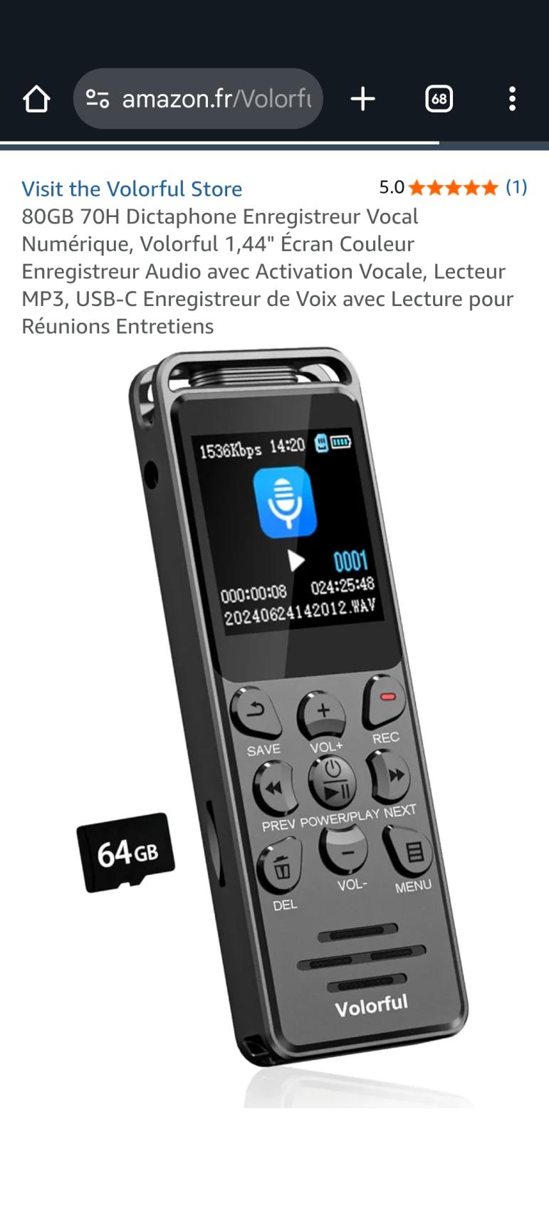 | 1 | 1 | dictaphone enregistreur vocal | FR | 1302584 |