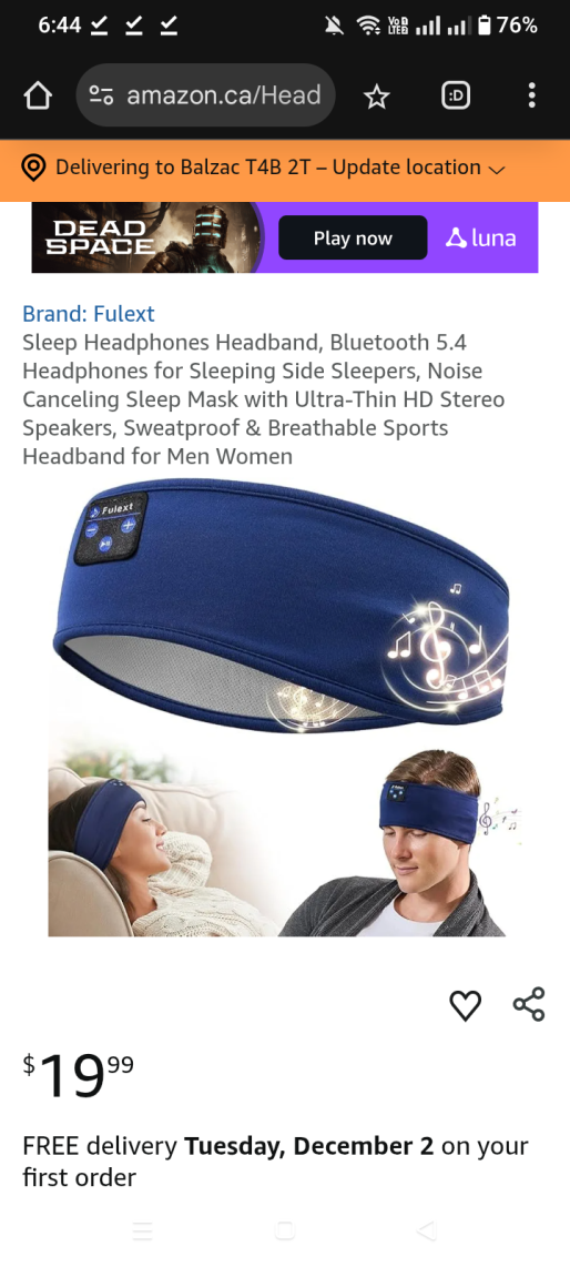 | 5 | 5 | sleep headphones bluetooth headband | CA | 1129554 |