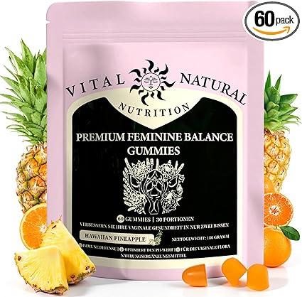 | 1 | 1 | Premium Feminine Balance Gummies, Women's Gummies with Pineapple Flavour for Intimate Wellbeing - With Probiotics & Vitamin C for pH Balance & Immune System - Vegan & Gluten Free - 60 Gummies | DE | 1129864 |