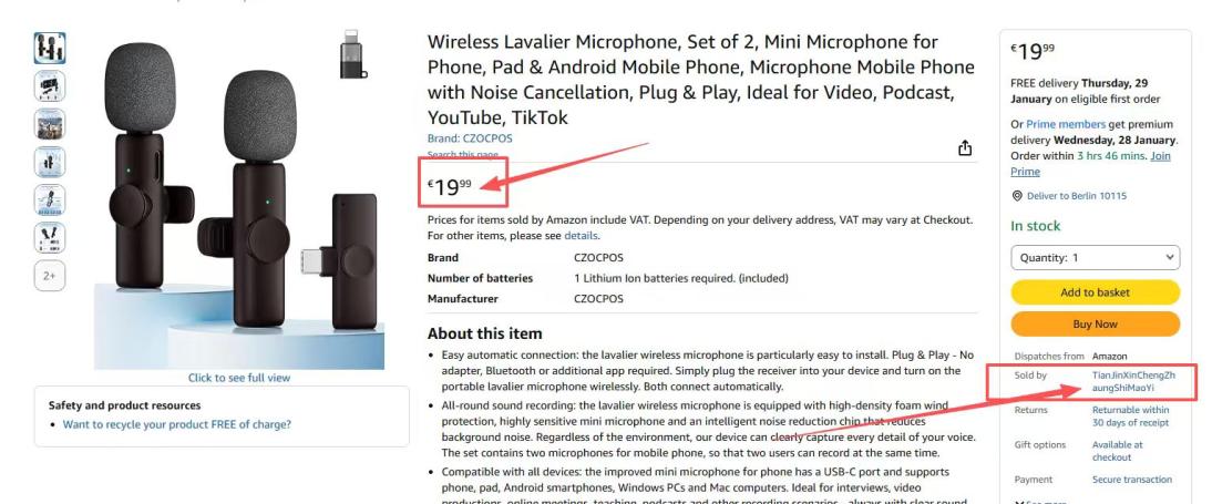 | 2 | 2 | lavalier mikrofon wireless für Phone | DE | 1285251 |