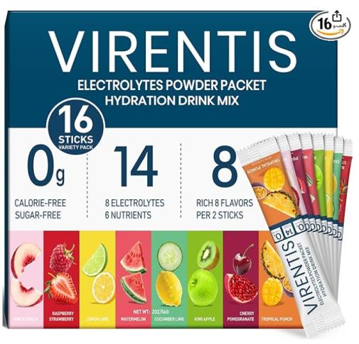 | 2 | 2 | 16 Sticks Electrolytes Powder Packets Sugar Free Hydration Packets, 8 Flavors Liquid Daily IV Electrolyte Drink Mix for Rehydration with 8 Electrolytes & 6 Vitamins, 0 Calorie, Low Sodium | USA | 1288739 |