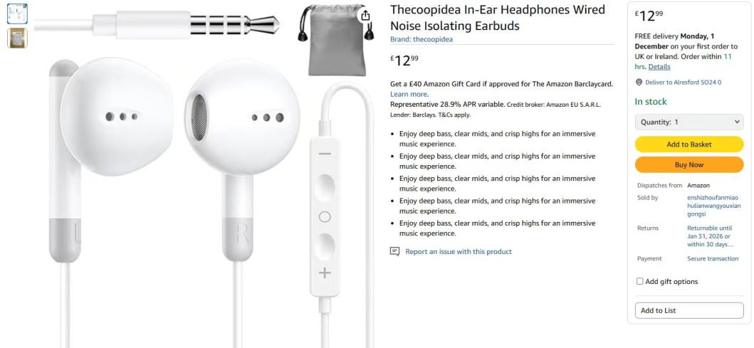 | 3 | 3 | Thecoopidea In-Ear Headphones Wired | UK | 1145184 |