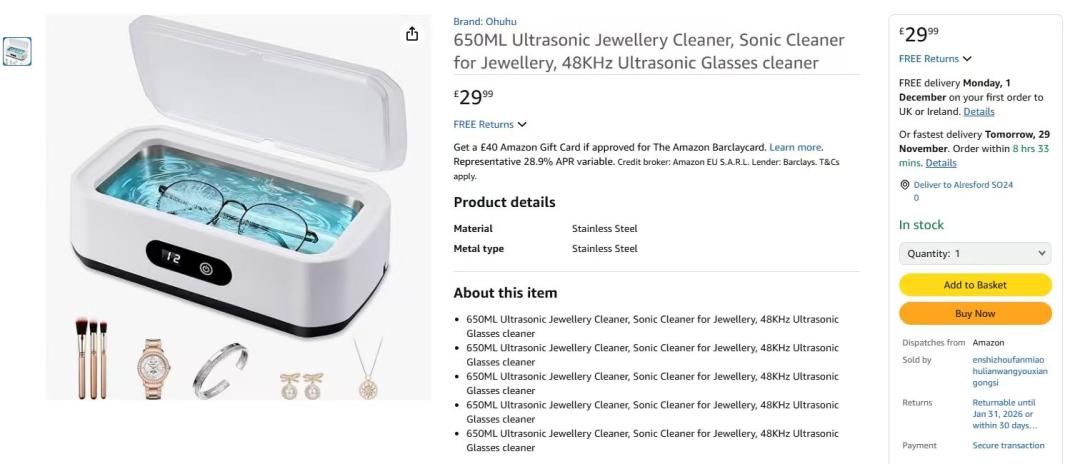 | 2 | 3 | 650ML Ultrasonic Jewellery Cleaner | UK | 1145185 |