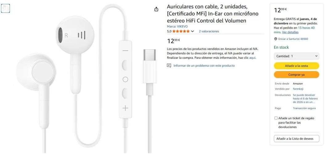 | 2 | 2 | VIKEVO Cuffie con filo 2Pezzi In-Ear con Microfono Stereo HiFi | ES | 1145195 |