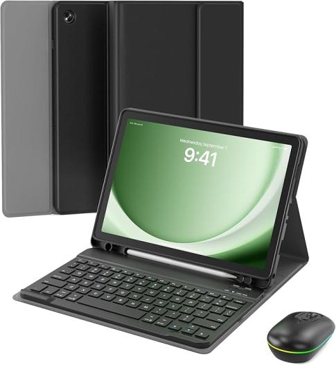 Samsung Galaxy Tab A9 Plus 11 inch Case with Keyboard, Backlit Mouse and Detachable Magnetic Keyboard, Multi-Angle Stand Folio Slim Cover with S Pen Holder for Tablet A9+ 2023