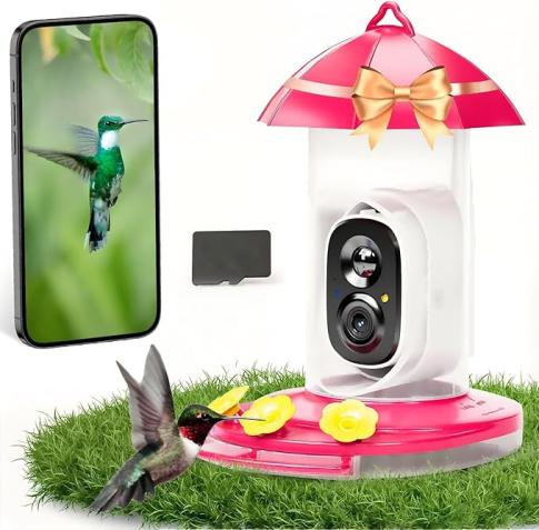 Hummingbird Feeder with Camera for Outdoors with 2K Bird Watching Camera, AI Identify 10000+, 32G Card, Idea Gift for Bird Lover