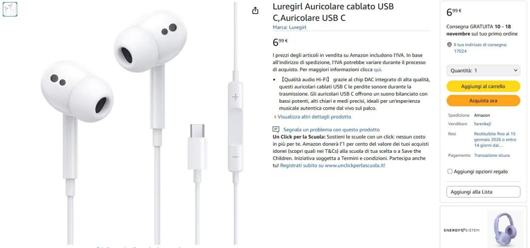 | 3 | 3 | Luregirl Auricolare Type C | IT | 1095128 |