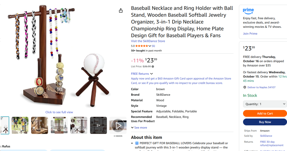 | 2 | 2 | baseball necklace holder | USA | 1038440 |