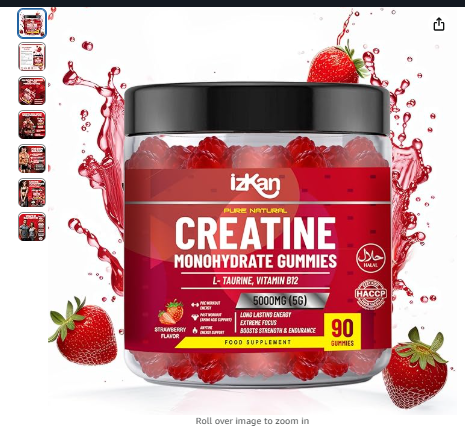 Pro Creatine Monohydrate Gummies 5g for Men & Women - 90 Chewable Creatine Gummies Strawberry Flavoured Gym Pre Workout Gym Supplement Vegan (1)
