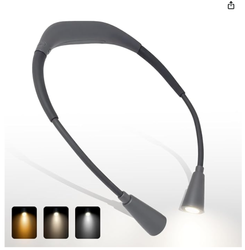 LED Rechargeable Neck Reading Light, Suitable for Reading Books with 3 Color Temperatures, 90 Hour Long-Lasting Recharging Lamp, Ergonomic, Suitable for Reading, Weaving, and Repairing