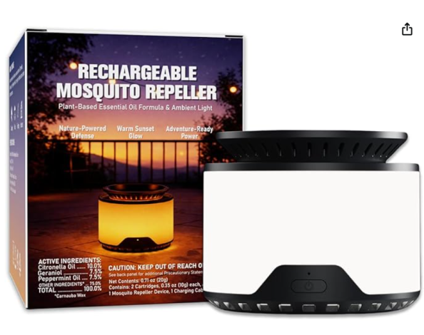 Mosquito Repellent Outdoor Patio, Rechargeable Mosquito Repeller with Plant-Based Cartridges, Fan-Powered Diffusion, 2 Refills Included, Black, L
