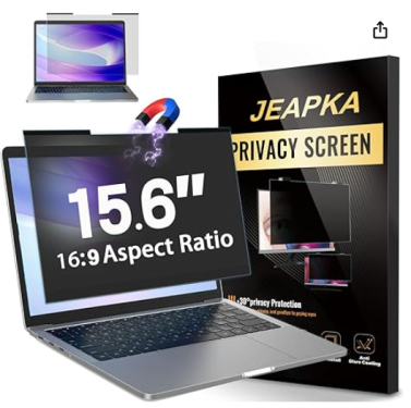 Magnetic Laptop Privacy Screen Filter 15.6 inch for 16:9 Widescreen Computer Monitor, Removable Anti Blue Light Privacy Shield, Anti-Glare Protector