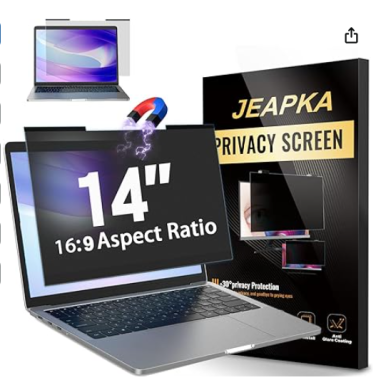 Magnetic Laptop Privacy Screen Filter 14 inch for 16:9 Widescreen Computer Monitor, Removable Anti Blue Light Privacy Shield, Anti-Glare Protector