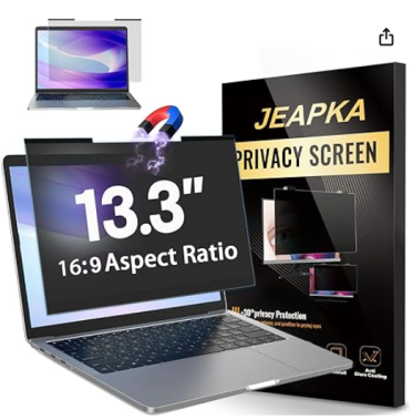 Magnetic Laptop Privacy Screen Filter 13.3 inch for 16:9 Widescreen Computer Monitor, Removable Anti Blue Light Privacy Shield, Anti-Glare Protector
