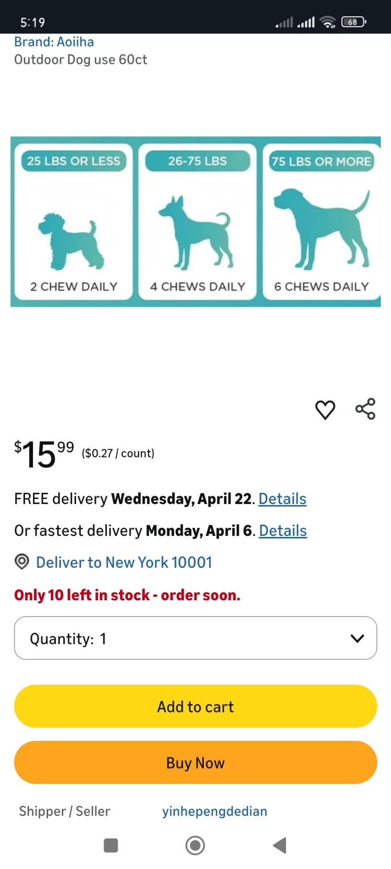 | 1 | 1 | puppy pads | USA | 1366628 |