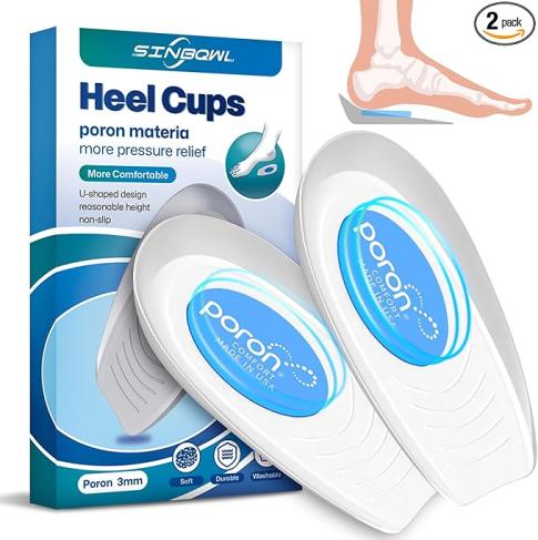 Poron Heel Pads for Shoes, Sports Traction Shock Absorbing Gel Heel Cups, 2 Pack for Achilles Tendonitis, Plantar Fasciitis, Heel Spurs & Heel Pain Relief for Men/Women (L, 3mm Thick)