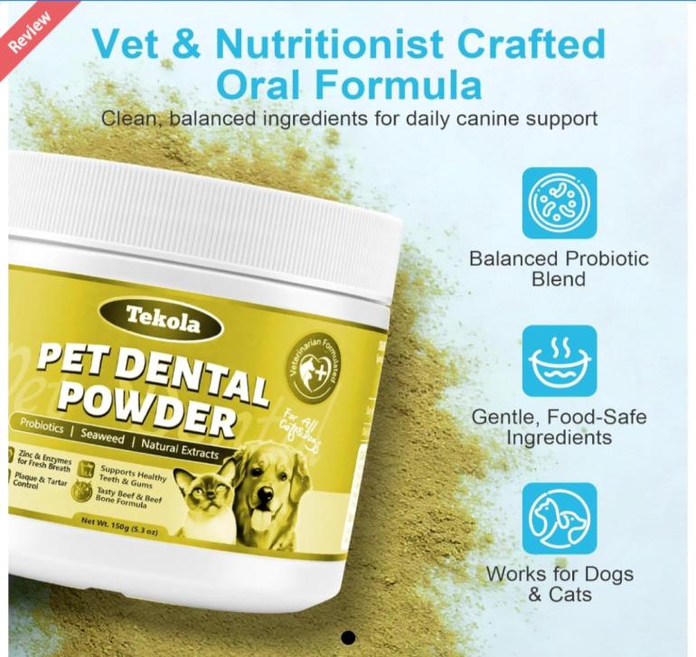 | 3 | 3 | Dog Teeth Cleaning Powder - Beef & Bone Flavor, Enzyme-Based Plaque Remover, Tartar Control & Dental Care for Dogs, Fresh Breath, Easy to Use, Prevents Plaque Build-Up, Oral Hygiene, Yellow | USA | 1365377 |