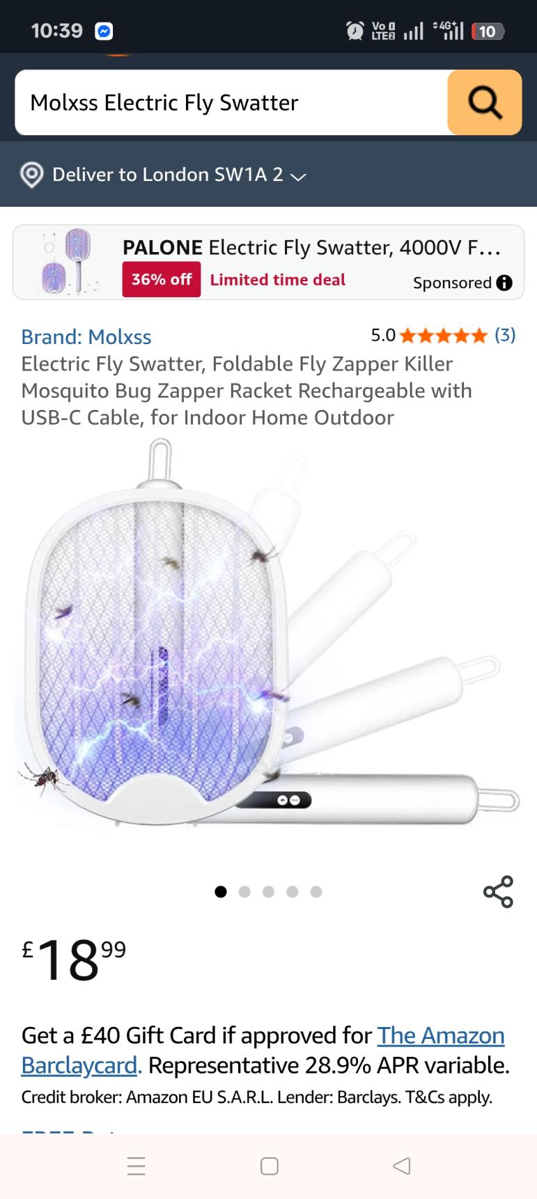 | 2 | 2 | Molxss Electric Fly Swatter | UK | 1365415 |