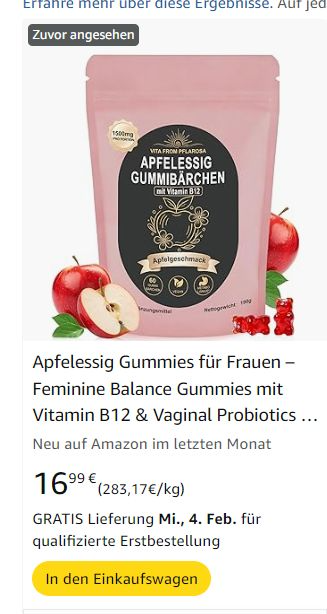 | 1 | 1 | apfelessig gummies für frauen | DE | 1295725 |