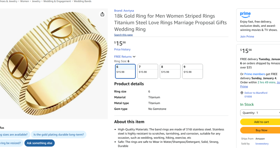 | 4 | 4 | Cartier ring | USA | 1264556 |