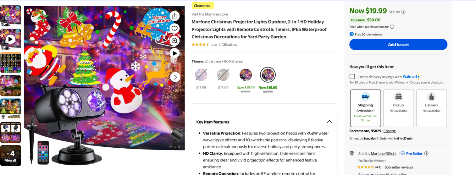| 5 | 5 | Morfone Christmas Projector Lights Outdoor | USA | 1319211 |