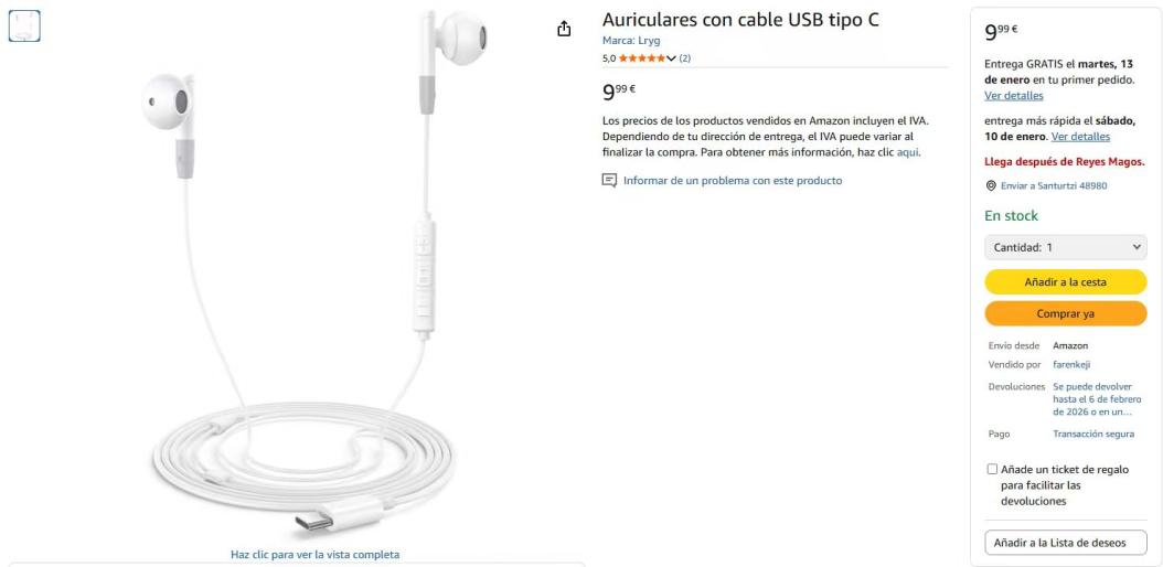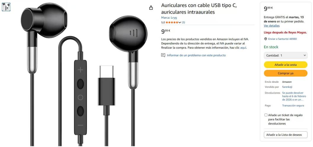 | 3 | 3 | lryg écouteurs filaire usb type c | ES | 1240173 |