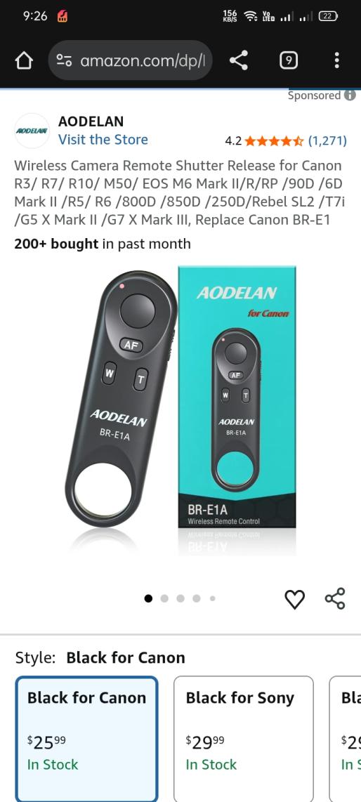 | 2 | 2 | canon wireless remote control | RATING USA | 1175322 |