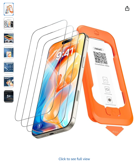 | 20 | 20 | NEW'C 3 Pieces Full Screen Protector for iPhone 16 Pro Max 6.9 Inch | IT | 1142972 |