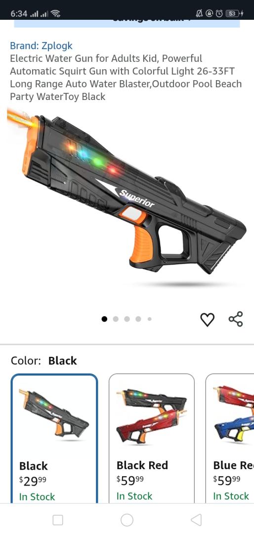 | 1 | 1 | Electric Water Gun with Colorful Light | USA | 1304933 |